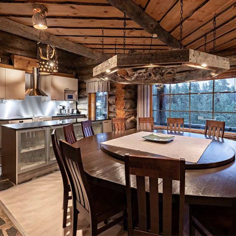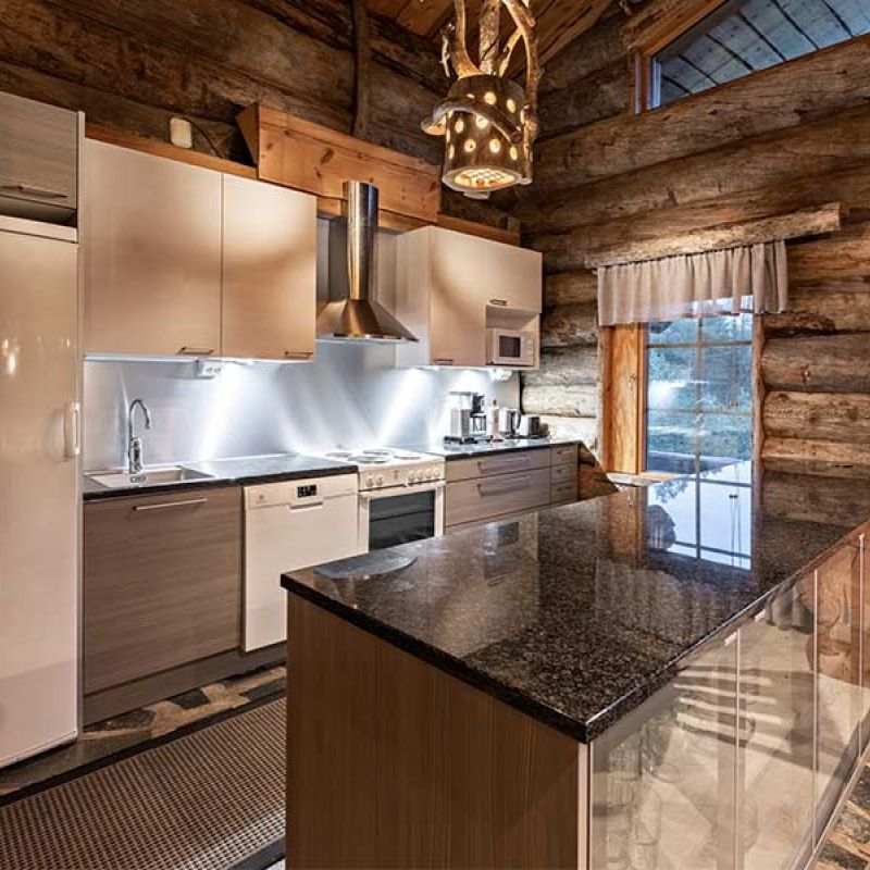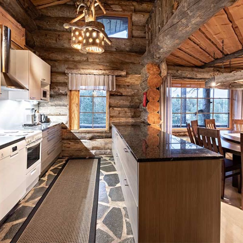 Rukatunturin välittömässä läheisyydessä luonnonkauniin ja hiekkarantaisen Salonkijärven rannalla järeästä kelosta rakennettu, laadukkaasti sisustettu huvila. Huvilan erinomainen suunnittelu ja toimivuus täyttävät vaativammatkin toiveet.