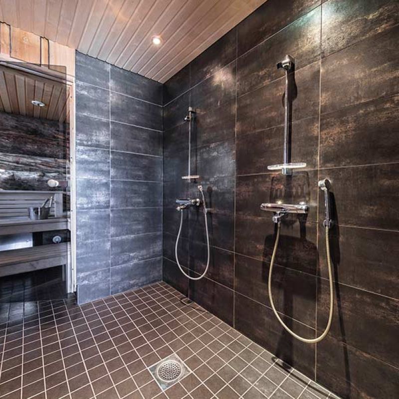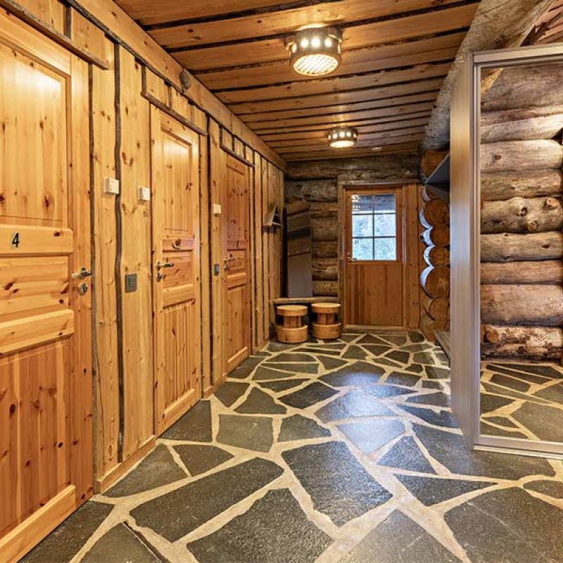 tupakeittiö, sauna, pesuhuone + wc, pukuhuone, 2 wc:tä